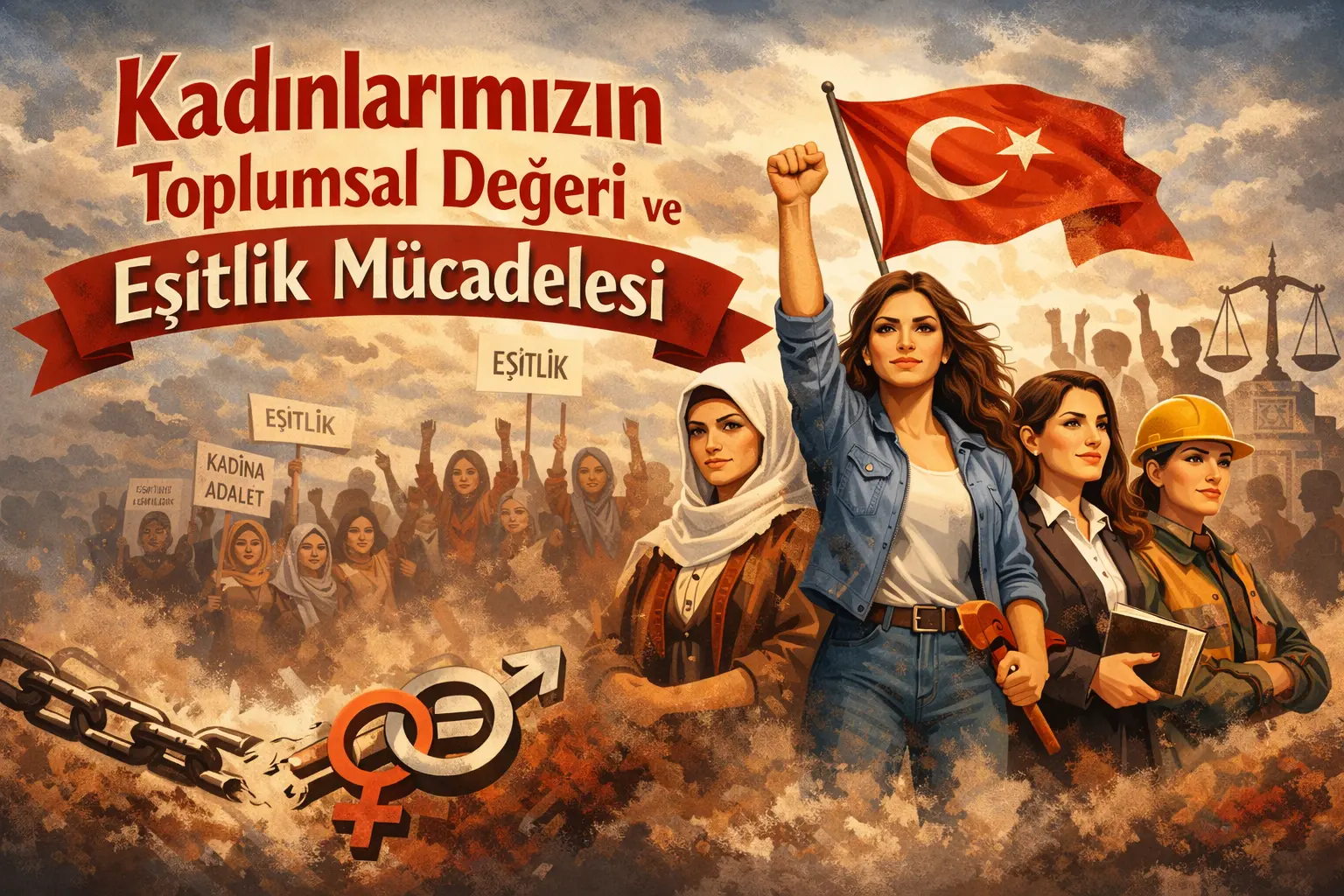 Kadınlar kalp ve bilinçlerde eşitliklerini kanıtladıkça insanlık yönünden ilerleme sağlanır. Şiir şarkı roman ve film gibi sanat dallarında sürekli övülen bu varlıklar dinsel ifadelerde de kutsallıkla anılır. Atatürk’ün sözleriyle tekrarlanan değerleri toplumun temel direği haline getirir. Annelik eşlik kardeşlik ve kız çocuk rolleriyle en seçkin parçamız olarak görülür. Bu bakış açısı toplumsal bağları güçlendirir. Ancak eşitlik mücadelesi hala devam etmektedir.