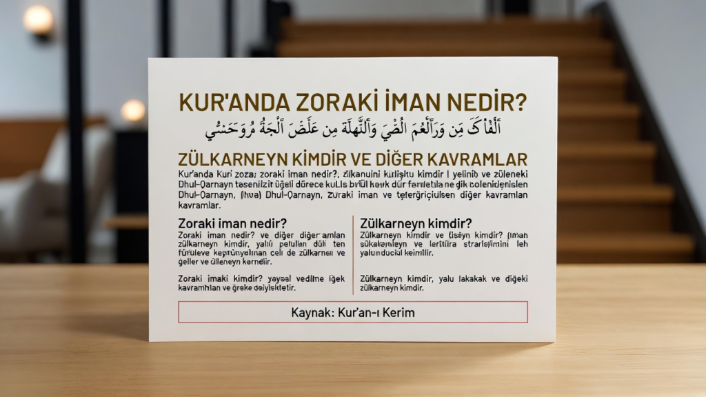 Kavramların hepsi birbirini tamamlayıcı niteliktedir. Zikir ile zulüm karşıt kavramlar olarak öne çıkar. Zilkurba sosyal adaleti zülkarneyn ise tarihsel dönemi temsil eder. Zuhrufal kavl ise sözlerin gücünü gösterir. Bu açıklamalar okuyucuya geniş bir perspektif sunar. Kuranda zoraki iman nedir sorusu bu kavramlar zinciriyle daha net anlaşılır. Her terim inanç sisteminin bir parçasını oluşturur.