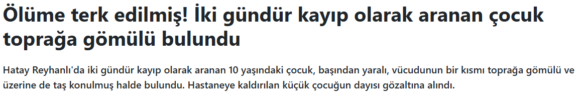 Efe, 3 Aralık akşamı “markete gitti” denilerek evden çıkarıldıktan sonra bir daha geri dönmedi. Ailesi ertesi gün kayıp başvurusunda bulundu. Ancak komşular polise çok kritik bir bilgi verdi: *“Son günlerde evden sürekli çocuk ağlama ve bağırtı sesleri geliyordu. Çocuğu çok dövüyorlardı.”* Bu ihbar üzerine ekipler, dün gece Yenimahalle’deki müstakil evin bahçesinde kazı çalışması başlattı. Gece saat 03.00 sıralarında korkunç gerçek gün yüzüne çıktı: Efe’nin cansız bedeni, evin arka bahçesinde yaklaşık 1 metre derinliğinde açılan çukurda gömülü olarak bulundu.