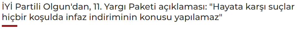 Yargı paketleri, genellikle birden fazla alanda değişiklik içeriyor. Bu pakette de avukatlık mesleği, icra süreçleri ve infaz hükümleri gibi konular bir arada ele alınıyor. Ancak infaz indirimlerinin kapsamı, en çok tepki çeken kısım olmayı sürdürüyor. Olgun'un açıklaması, parti olarak bu maddelere rezerv koyduklarını belli ediyor.