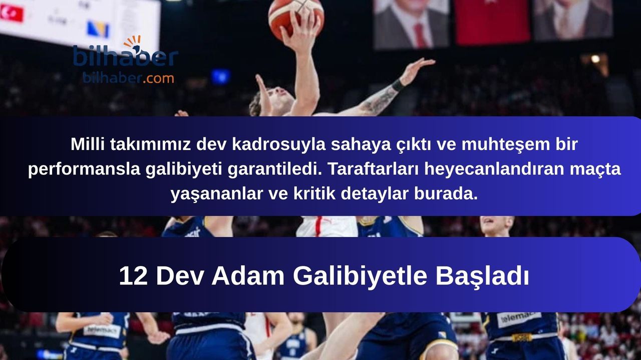 12 Dev Adam, karşılaşmaya başladığı andan itibaren kararlılığını gösterdi. İlk çeyrekte rakip savunmayı zorlayan milliler, hızlı hücum organizasyonlarıyla farkı açmaya başladı. Potanın altında yaşanan mücadeleler ve savunmadaki disiplinli duruş, galibiyetin temellerini ilk dakikalardan itibaren attı. Oyuncular sahada adeta bir orkestra gibi uyum içinde çalışırken, her pas ve her savunma hareketi tribünlerden alkış topladı.