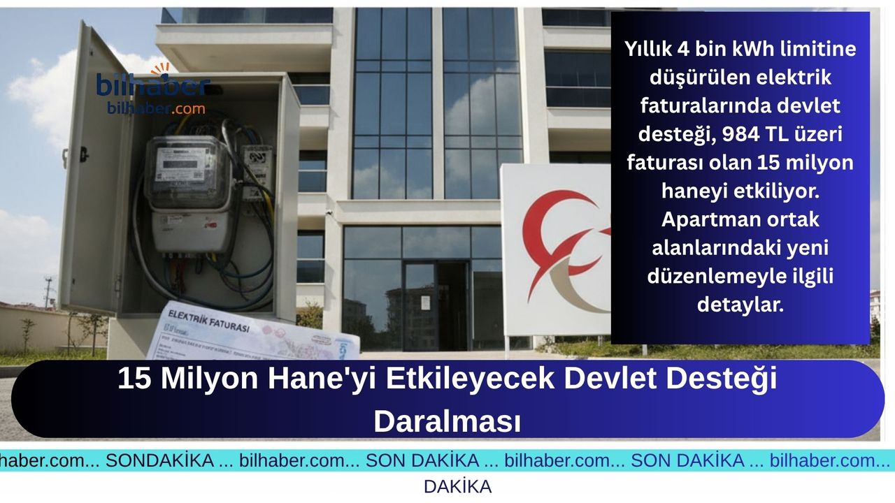 Elektrik faturalarında alınan sürpriz kararla milyonlarca hane etkilendi. Resmi Gazete'de yayımlanan kararla birlikte, apartmanların ortak kullanım alanlarındaki elektrik tüketiminde uygulanan kademe limiti önemli ölçüde düşürüldü. Bu değişiklik, özellikle yüksek tüketimli apartmanlar ve siteler için ciddi mali yük getiriyor.