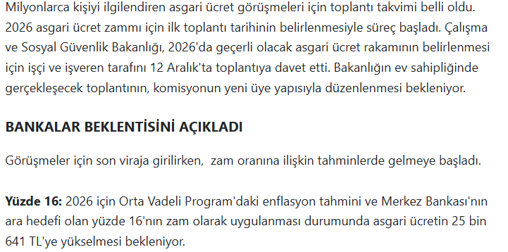 Toplantıların Aralık ayı boyunca devam etmesi, taraflara müzakere alanı sağlayacak. 12 Aralık'taki ilk oturum, genel çerçeveyi çizecek; sonraki haftalarda ise detaylı hesaplamalar ve senaryo analizleri yapılacak. Enflasyon hedefinin yüzde 16 olması, düşük zam baskısını artırırken; gerçek enflasyonun üzerinde bir oran, sosyal huzuru pekiştirebilir. Banka tahminlerinin çeşitliliği, komisyonun esnek bir yaklaşım benimsemesini zorunlu kılıyor. Net ücretteki her bin liralık artış, milyonlarca ailenin gıda, barınma ve eğitim harcamalarını rahatlatma potansiyeli taşıyor.