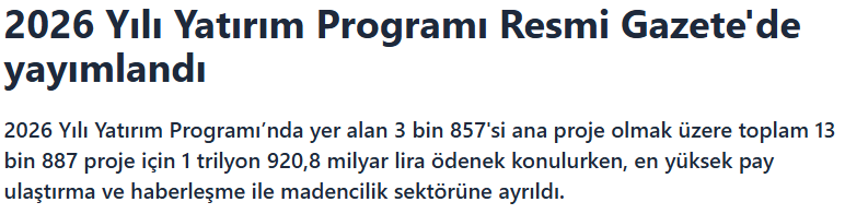 Genel tablo, 2026 yılının kamu yatırımları açısından hareketli ve dönüştürücü geçeceğine işaret ediyor. Programın uygulanması, ekonomik hedeflere ulaşmada belirleyici olacak.