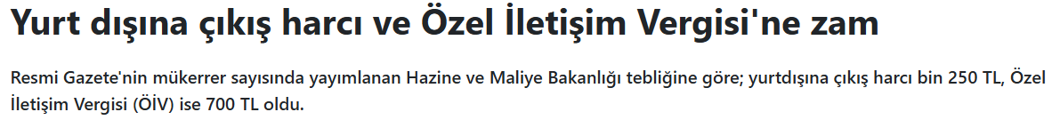 Genel olarak yeni yılda uygulanacak bu vergi tutarları, herkesin gündeminde yer almaya devam edecek. Yurt dışı çıkış harcı ve Özel İletişim Vergisi'ndeki artışlar, pratik hayatta kendini hissettirecek ve detaylardaki bu değişiklikler uzun vadeli etkiler yaratacak.
