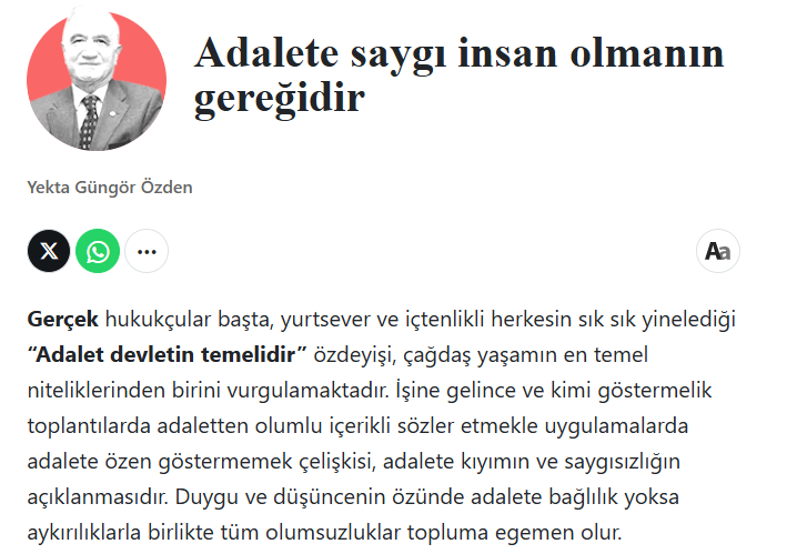 Adalet aynı zamanda ülkenin de temel taşıdır; gökyüzünü kaplayan güneşli bir çatı gibi koruyucu rol üstlenir. Bu güvenceyi insanlık ve yaşamın ayrılmaz parçası olarak görenler, onun gölgelenmesine asla izin vermez ve buna tahammül edemez. Her kararın sonucu ne olursa olsun, kararı veren kurul veya organa karşı yalnızca hukuksal eleştiri yapılmalı, bunun dışında herhangi bir saldırıdan kaçınılmalıdır. Kararın tekrarlanmaması veya düzeltilmesi için öngörülen yasal yollar titizlikle izlenmelidir. Karara karşı oy veren üyeler nasıl hukuk çerçevesinde görüşlerini ifade ediyorsa, eleştiri yapan herkes de bu sınırı aşmamalıdır. Karara katılmayan veya eleştiren kişiler, kararın uygulanmasına kesinlikle karşı duramazlar.