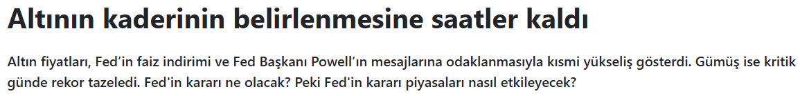 Sonuç olarak, Fed'in bugünkü toplantısı altın yatırımcılarının uykusuz gecelerine neden olurken, piyasalardaki her dakika yeni bir gelişmeye gebe. Ons altının 4 bin 198 dolarlık direnci, gram altının 5 bin 750 liralık dengesi ve gümüşün 61,03 dolarlık rekoru, hepsi Fed'in hamlesine kilitlenmiş durumda. Powell'ın mesajları, Trump'ın eleştirileri ve enflasyon rüzgarları arasında, altın fiyatları yeni bir çağa mı adım atıyor? Bu sorunun cevabı, saatler içinde netleşecek ve küresel ekonomiyi yeniden tanımlayacak.