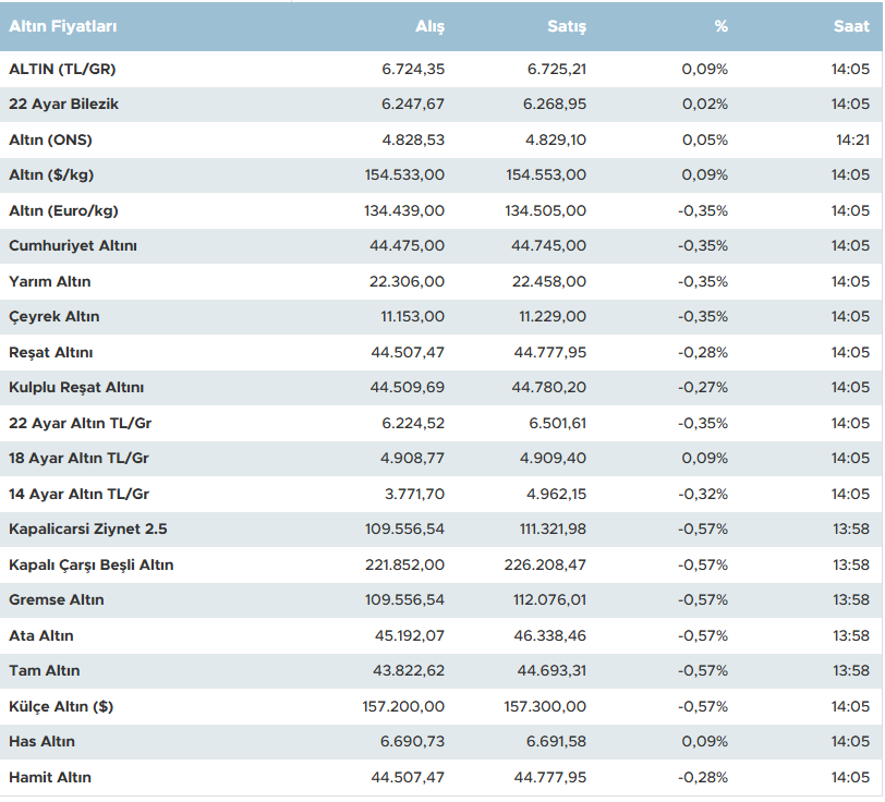 Güncel altın fiyatları canlı takibi, doğru zamanlama için kritik önem taşıyor. Değişim oranları, kısa vadeli hareketlilik hakkında ipucu veriyor.
