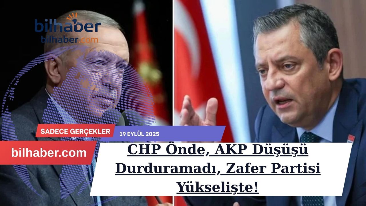 HBS Araştırma Şirketi tarafından 12-17 Eylül 2025 tarihleri arasında 32 şehirde 3 bin 200 seçmen ile yüz yüze yapılan son anket, Türkiye’nin siyasi haritasında çarpıcı sonuçlar ortaya koydu. Buna göre, CHP yüzde 33,9 oy oranıyla birinci parti olurken, AKP’nin oy kaybı sürüyor ve yüzde 27,8’de kaldı. CHP, AKP’nin 6,1 puan önünde yer alarak, muhalefetin güçlü bir şekilde öne çıktığını gösterdi.
