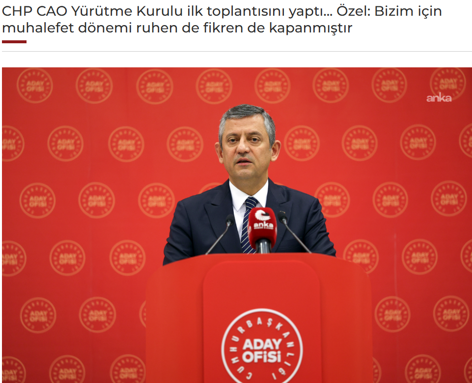 Özel'in İmamoğlu'na yönelik desteği ve tutukluluk vurgusu, partinin birlik mesajını güçlendiriyor. Bu durum, CAO'nun sembolik önemini artırıyor.
