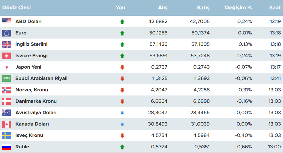 Gelişen piyasa kurları da bu hikayenin bir parçası ve ruble gibi egzotikler dikkat çekiyor. RUB/TRY'nin yüzde 0.67'lik sıçraması, Brent petrolün 80 USD bandını aşmasıyla açıklanabilir – Rusya'nın bütçe dengesi, rubleyi canlandırıyor. SAR/TRY'nin stabiliteyi, OPEC+ kararlarıyla bağdaştırıyoruz; yüzde 0.01'lik değişim, Orta Doğu ticaretinin öngörülebilirliğini koruyor. AUD/TRY ve CAD/TRY'nin emtia korelasyonu, Avustralya ve Kanada'nın maden ihracatını yansıtıyor – AUD/USD paritesi dolaylı olarak etkilenirken, bu kurlar TL yatırımcılarına çeşitlilik sunuyor. Piyasa faktörleri arasında, TCMB rezervleri ve Fed'in QT (quantitative tightening) politikası öne çıkıyor; enflasyon tahminleri revize edilirse, USD/TRY 43.00'lere göz kırpabilir. Uzun vadeli olarak, bu pariteler portföy riskini dengeliyor; örneğin bir JPY carry trade, düşük faizli yenden yüksek getirili TRY'ye geçişle kazanç vaat ediyor. Bugünkü veriler, volatilitenin fırsatlara dönüştüğünü gösteriyor – düşük değişimli DKK gibi kurlar, hedging için ideal.