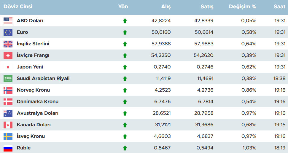 Günün en dikkat çeken performanslarından birine ise İngiliz Sterlini imza atıyor. Majör para birimleri arasında yüzde 0,61'lik artış oranıyla öne çıkan Sterlin, güçlü duruşunu koruyor. Alışta 57,5769 TL seviyesini gören Sterlin, satışta 57,6025 TL ile zirve takibini sürdürüyor. Benzer bir pozitif ivme Japon Yeni ve İsviçre Frangı'nda da gözlemleniyor. İsviçre Frangı yüzde 0,43'lük artışla 54,0404 TL satış fiyatına ulaşırken, Japon Yeni yüzde 0,63'lük değer kazanımıyla 0,2733 TL seviyelerinden işlem görüyor.
