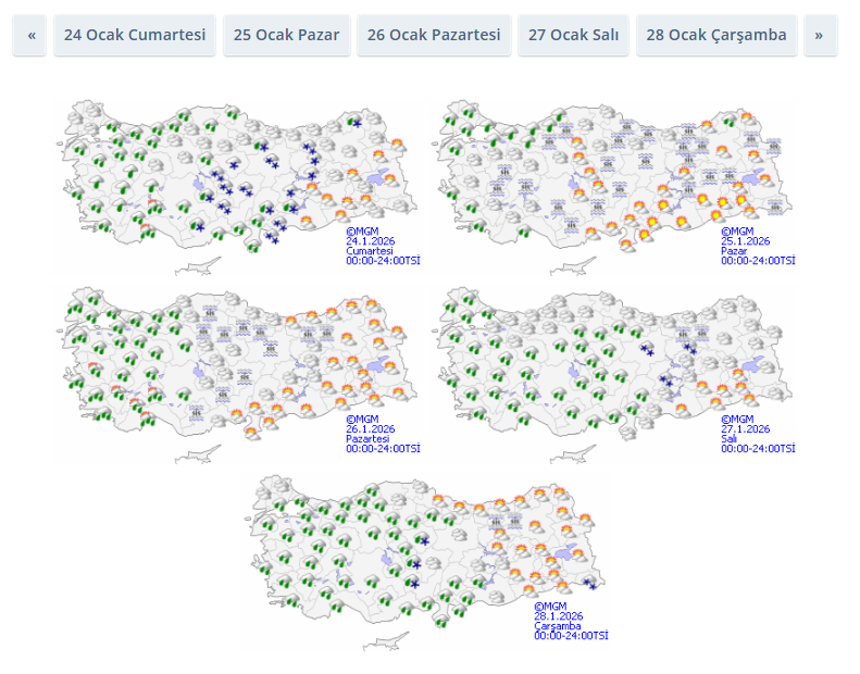 5 günlük hava tahmini haritaları, sıcaklık dağılımı, yağış alanları ve rüzgar yönlerini görsel olarak sunuyor. Bu haritalar, bölge bölge detaylı inceleme imkanı sağlarken, güncel hava durumu takibini kolaylaştırıyor. Parçalı bulutlu, çok bulutlu veya yağışlı geçecek günler, hava tahmini verilerinde sıkça karşılaşılan ifadeler arasında yer alıyor.