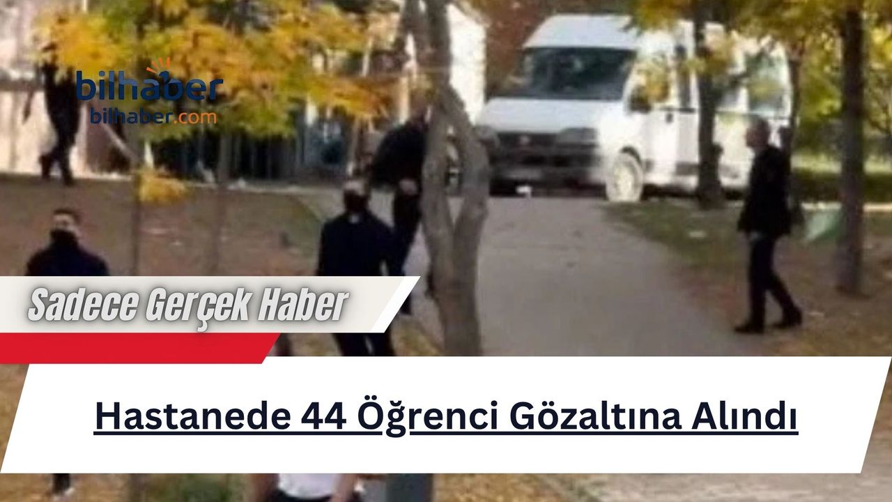 Hastane bahçesinde bir anda güvenlik ablukası oluşturuldu. Muayene kâğıdı ile sıra bekleyen yaralı bir öğrenci dahil, toplamda 44 öğrenci hastane ortamında gözaltına alındı. Öğrencilerin gözaltına alınmak istemesine dayanışma amacıyla hastanede bulunan diğer arkadaşları, polisin müdahalesine karşı çıkmaya çalışınca gerginlik tırmandı. Evrenel’in aktardığına göre, polis ekibi hastane içinde ve bahçesinde öğrencilere müdahalede bulunarak çok sayıda kişiyi alıkoydu.
