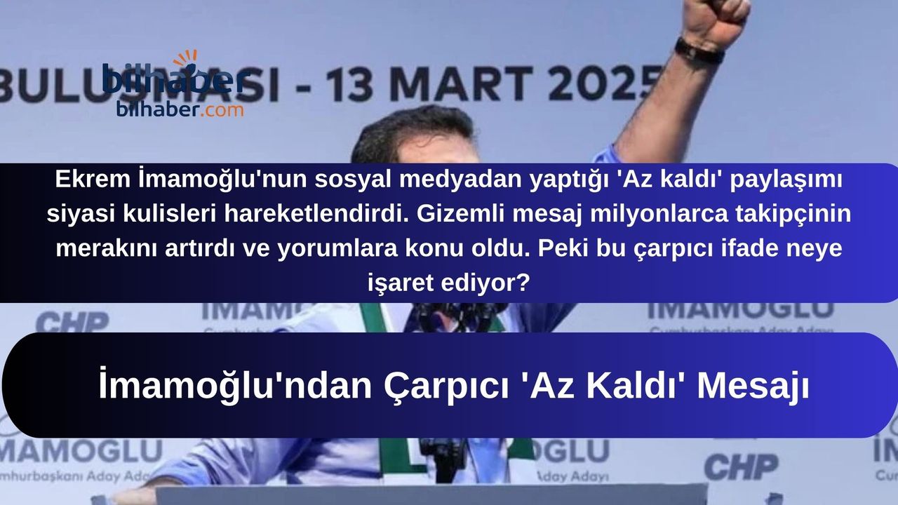 Ekrem İmamoğlu, 27 Kasım 2025 tarihinde sosyal medya hesabından yaptığı paylaşımla gündeme bomba gibi düştü. İstanbul Büyükşehir Belediye Başkanı'nın "Az kaldı" ifadesiyle yaptığı paylaşım, siyasi çevrelerde ve kamuoyunda yoğun bir merak ve tartışma ortamı yarattı. İmamoğlu'nun bu gizemli mesajının neye işaret ettiği, hangi projeyi veya siyasi gelişmeyi ima ettiği, sosyal medyada saatlerce konuşuldu ve binlerce yorum aldı.