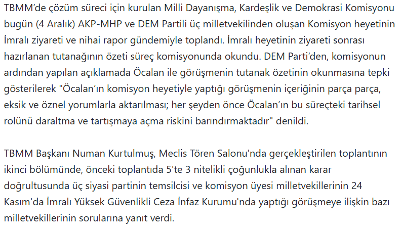 Sonuç olarak, 4 Aralık 2025'teki bu toplantı, İmralı tutanaklarının ilk kez kısmen okunmasıyla siyasi süreci yeni bir evreye taşıdı. Öcalan'ın taahhütleri, Bahçeli ve Erdoğan'a teşekkürleri, üniter yapı vurgusu gibi unsurlar, barış umutlarını diri tutuyor. Ancak CHP'nin şeffaflık talepleri, sürecin test edildiğini gösteriyor. Raporlama aşamasında atılacak adımlar, toplumun beklentilerini karşılayacak mı? Bu soru, günlerin değil haftaların cevabını bekliyor – zira barış, sadece sözlerde değil, somut eylemlerde hayat bulur. Gelecek raporlar, bu belirsizliği aydınlatacak ve Türkiye'nin geleceğini bir adım öteye taşıyacak.