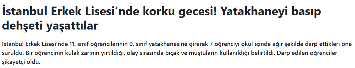 Sonuç olarak, İstanbul Erkek Lisesi'ndeki bu korku gecesi, gençlerin geleceğini tehdit eden karanlık bir leke olarak tarihe geçiyor. 24 Kasım'daki baskın, mesajlaşma kavgasından şiddete uzanan bir zincirin halkası; ancak soruşturmalar adaleti sağlayabilir. MEB ve savcılığın kararlılığı, benzer dehşetleri önlemede kilit rol oynayacak. Ailelerin acısı, toplumun vicdanında yankılanırken, okulların güvenli limanlara dönüşmesi hepimizin sorumluluğu. Bu olay, eğitimde huzurun ne kadar kırılgan olduğunu hatırlatıyor; zira her öğrenci, korkusuz bir uyku ve parlak bir yarın hak ediyor. Değişim, ancak bu tür uyarılarla hızlanır.