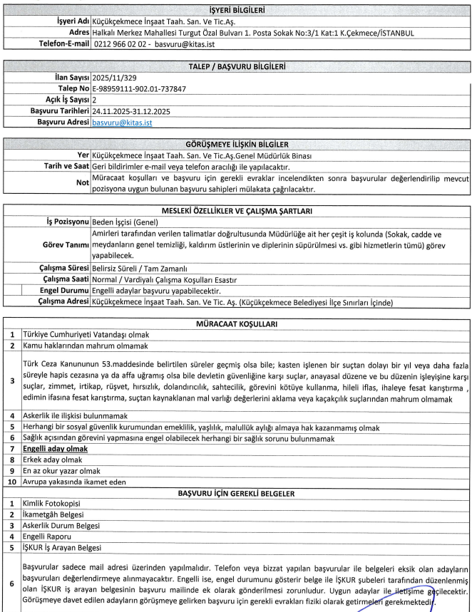 Peki, neden şimdi? İstanbul, sürekli değişim halinde. Yeni projeler, belediye sınırlarında çoğalıyor. Küçükçekmece, bu değişimin ön saflarında. Firma, bu dalganın parçası; taahhütleri, şehrin temiz ve yeşil kalmasını sağlıyor. Adaylar, bu dalgaya binme şansını yakalıyor. Erkek, engelli, okur yazar ve Avrupa yakalı olmak – bu profil, binlerce insanı kapsıyor. Sağlıklı olmak, görevi yapmayı engellememek; emeklilik maaşı almamak, yeni bir başlangıca yer açmak.