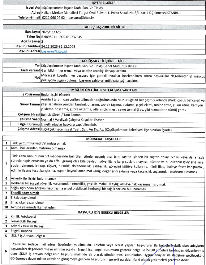 E-posta adresindeki ufak bir yazım farkı – birinde [email protected], diğerinde benzer bir varyasyon – ama öz aynı. İlan numaraları, İŞKUR'un resmi damgasını taşıyor: 2025 yılının bu son aylarında, taze fırsatlar. Açık iş sayıları sınırlı, ama etkisi büyük. Beş adam, beş çift el, şehrin dokusunu değiştirecek.