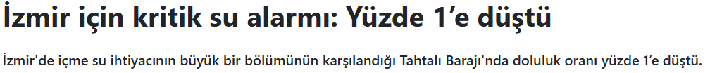 Sonuç olarak, Tahtalı Barajı'nın yüzde 1'lik seviyesi, İzmir'i tarihinin en kritik su sınavına sokuyor. Balçova ve diğer barajların kuruması, kesintileri zorunlu kılarken, Güzelhisar'ın yenilenmesi umut veriyor. İZSU'nun çabaları ve yağmur beklentisi, kentin susuzluktan kurtuluş reçetesi; ancak, iklim değişikliği bu alarmı bir uyarıya dönüştürüyor. Vatandaşlar, tasarrufta el ele verirken, bu kriz barajların ötesinde bir ders: Suyumuzu korumak, hepimizin görevi. İzmir'in mavisi, yağmurla dönsün; zira her damla, bir hayat hikayesi.