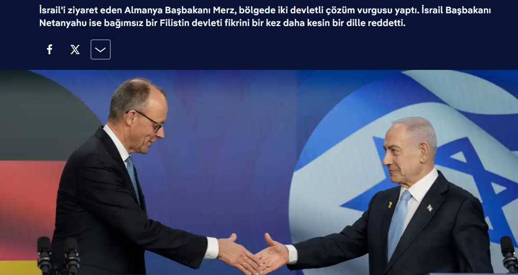 Zirvenin en keskin ayrılığı, iki devletli çözüm konusunda yaşandı. Merz, Ortadoğu'da "İsrail devletinin tanındığı bir gelecek" için çalıştıklarını belirterek, _"Bizim kanaatimiz, İsrail'in yanında bağımsız bir Filistin devletinin kurulmasının bu geleceğe dair en güçlü umut ışığını sunduğudur"_ dedi. Bu vurgu, Almanya'nın geleneksel pozisyonunu yansıtıyor; zira Berlin, yıllardır BM kararları çerçevesinde iki devletli çözümü destekliyor. Merz, bu çözümün "ancak müzakerelerle hayata geçirilebileceğini" ve "tam da şimdi gerekli olduğunu" ekledi; Gazze ateşkesi, müzakereler için bir pencere olarak görülüyor. Bu çağrı, Avrupa Birliği'nin genel çizgisiyle örtüşüyor; zira AB, Filistin'in devlet statüsünü tanıma yönünde adımlar atıyor. Ancak, Netanyahu'nun yanıtı net ve sertti: _"Arap devletleriyle daha kapsamlı bir barışı ilerletmenin bir yolu olduğuna ve Filistinli komşularımızla işleyen bir barış oluşturmanın da bir yolu bulunduğuna inanıyoruz. Ancak kapımızın hemen önünde, bizim yok edilmemize adanmış bir devlet kurmayız."_ Netanyahu, bağımsız Filistin devletini "yok edici bir tehdit" olarak reddederek, Hamas'ın rolünü ima etti. Bu fikir ayrılığı, zirvenin diplomatik başarısını gölgeledi; zira Merz'in umut dolu mesajı, Netanyahu'nun güvenlik odaklı retoriğiyle çarpıştı. Ziyaretin bu kısmı, Ortadoğu barış sürecinin tıkanıklığını somutlaştırıyor; iki devletli çözüm, Oslo Anlaşmaları'ndan beri tartışılıyor, ama Gazze Savaşı'yla iyice uzaklaştı. Merz'in vurgusu, Almanya'nın AB içindeki lider rolünü pekiştiriyor; zira Berlin, Ukrayna Savaşı'ndaki gibi, arabuluculuk iddiasını sürdürüyor.