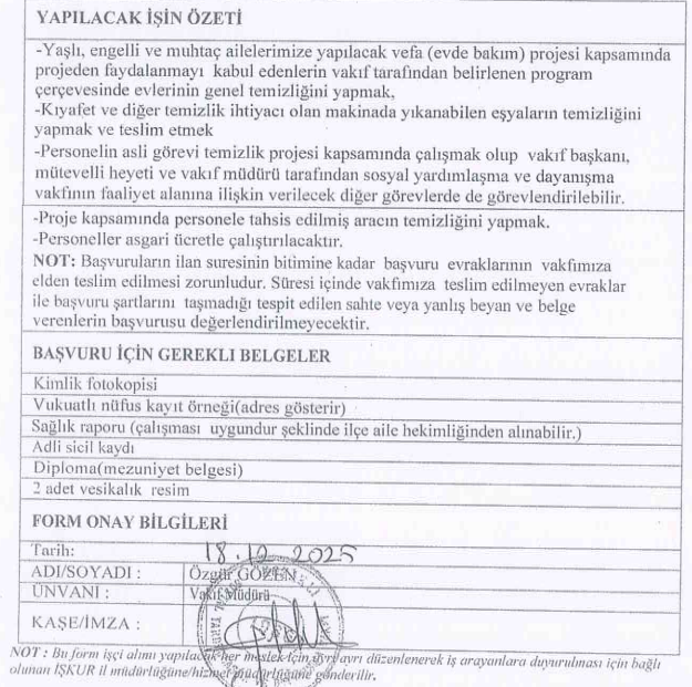 Program kapsamında, Sosyal Yardımlaşma ve Dayanışma Vakfı bünyesinde çeşitli görevler için personel seçimi yapılıyor. Temizlik işçisi pozisyonları başta olmak üzere, park bahçe bakımı, çevre düzenlemesi gibi alanlarda çalışacak katılımcılar aranılıyor. Bu işler, ilçenin daha temiz ve düzenli hale gelmesine doğrudan katkı sağlayacak. Katılımcı sayısı oldukça dikkat çekici ve birden fazla pozisyon için alım gerçekleşecek.