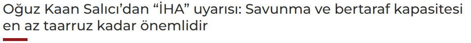 Ülkenin BAYKAR tarafından geliştirilen Bayraktar TB2, TB3, Akıncı ve Kızılelma gibi platformlarla, ayrıca TUSAŞ'ın ANKA ve AKSUNGUR modelleriyle SİHA alanında dünya çapında bir marka haline geldiğini kabul eden Salıcı, bu başarıların gölgesinde savunma tarafının ihmal edilmemesi gerektiğini belirtti. "Savunma ve bertaraf kapasitesi de en az taarruz kadar önemlidir" diyerek, dengeli bir savunma stratejisinin zorunluluğunu ortaya koydu.