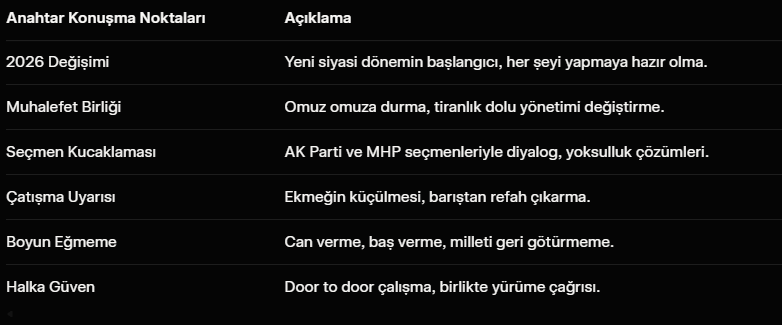 2026, kimsenin kaybetmeyeceği bir yıl olacak. Seçimleri kazandıklarında, kimse kendini kaybetmiş hissetmeyecek. Tüm vatandaşlar, görüşleri ne olursa olsun kucaklanacak. Bu netlik bir kez daha tekrarlandı.