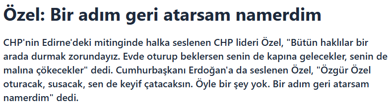 Sonuçta, Özgür Özel'in geri adım atmama sözü, namertlik eleştirisiyle tarih yazıyor. Mağdurların yanında durma, siyasi tarihin dönüm noktası olabilir.