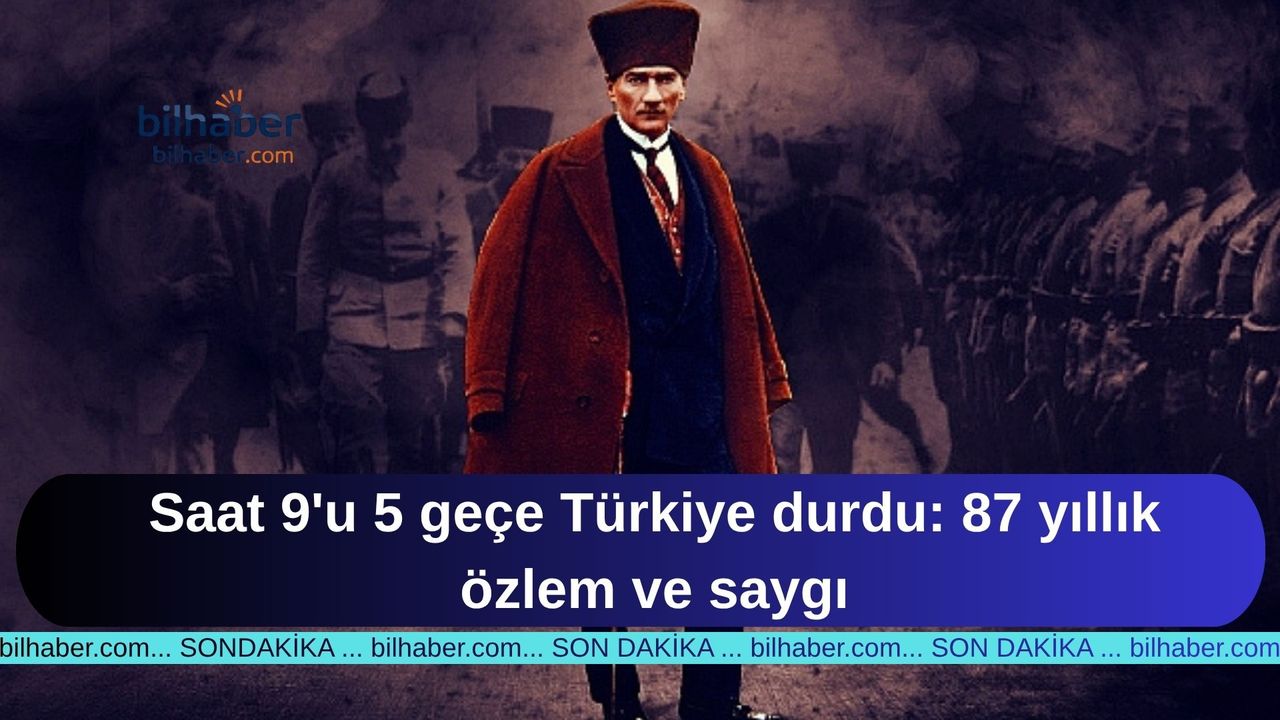 Türkiye her sene bu saatte aynı şeyi yapıyor ama her seferinde aynı duygu yeniden yaşanıyor. 87 yıl geçmiş ama o anı unutmadık, unutmayacağız. Saat 9'u 5 geçe Türkiye'nin kalbi bir kez daha durdu, sonra hep birlikte attı.