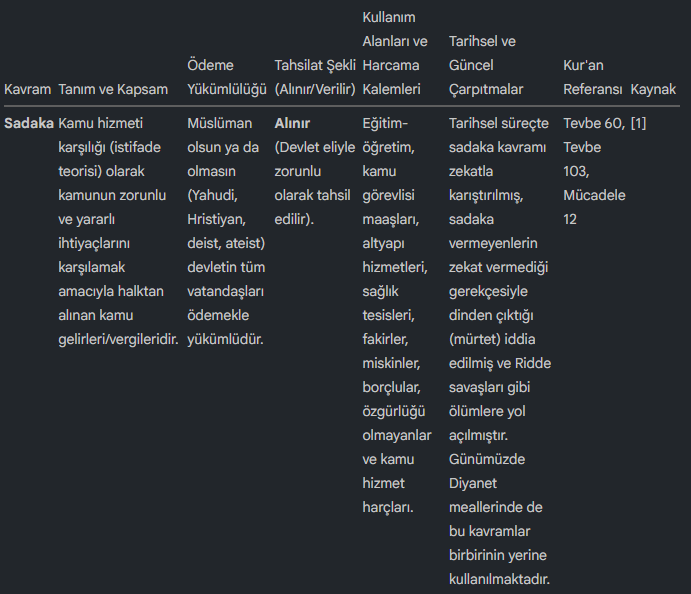 Kur'an'da sadaka kelimesi, Tevbe Suresi 60. ayette detaylı harcama kalemleriyle belirtiliyor: Fakirler, yoksullar, bu işte çalışan memurlar, kalpleri İslam'a ısındırılacaklar, köleler, borçlular, Allah yolunda cihad edenler ve yolda kalanlar için ayrılıyor. Bu liste, vatandaşlık statüsünden bağımsız bir kamu hizmeti vurgusu taşıyor. Sadaka burada zekat olarak değil, genel toplum yararı için bir kaynak olarak geçiyor.