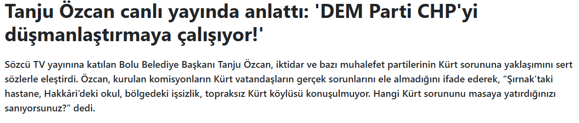 DEM Partisi'ne yönelik eleştiriler, röportajın en keskin kılıcını oluşturdu. Özcan, partiyi "terör örgütünün partileşmiş hali" olarak tanımlayarak, "DEM Parti kendisine biçilen, verilen rolü oynuyor. DEM Parti sonuç itibarıyla bir terör örgütünün partileşmiş hali, onların sözcüsü. Başından beri böyle geliyor. Onlar Kandil’den bağımsız, Öcalan’dan bağımsız siyaset yapamazlar" diye konuştu. Bu itham, DEM'in bağımsız hareket edemeyeceğini ima ediyordu; Özcan, eski HDP lideri Selahattin Demirtaş'ın kaderini örnek verdi: "Bunu yapmaya kalktı mı Selahattin Demirtaş? Kısmen kalktı. Demirtaş içeri atılmasaydı ve bu tutumunu sürdürseydi… Ben 'PKK denen örgüt' diye başlayan konuşmasını hatırlıyorum. İmralı’da Öcalan’la görüştükten sonra 'Seni başkan yaptırmayacağız' dediği konuşmadan sonra ipinin nasıl çekildiğini biliyorum. O tarihlerde ben de milletvekiliydim." Özcan, bu anıyı paylaşarak, DEM'in CHP'yi hedef aldığını savundu: "DEM şu anda kendi rolünü oynuyor. Cumhuriyet Halk Partisi’ni düşmanlaştırmaya çalışıyor kendi aklınca." Bu suçlama, muhalefet içindeki gerilimleri su yüzüne çıkarıyordu; zira CHP'nin 2025'teki ittifak arayışları, DEM'le olası yakınlaşmaları tartışmalı kılıyordu. Özcan'ın bu çıkışı, milliyetçi kanadın sesi gibiydi – acaba bu, CHP içindeki ayrışmayı derinleştirecek mi?