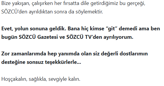 Sonuç olarak, Uğur Dündar'ın SÖZCÜ'yle vedalaşması, medya dünyasında bir sayfa kapanırken yenisinin açılışını müjdeliyor. Hoşçakalın, sağlıkla ve sevgiyle kalın dileği, okurlara uzanan sıcak bir el gibi. Bu mesaj, sadece bir ayrılık değil, aynı zamanda devamlılığın simgesi. Gazetecilikte gerçeğin peşinde koşmak, her veda sonrası daha da güçleniyor. Dündar'ın kalemi, yeni maceralarda da parlamaya devam edecek; zira hakikat arayışı, hiçbir zaman durmaz. Bu veda, hepimize kendi yolumuzu sorgulatırken, umudu diri tutan bir not düşüyor.